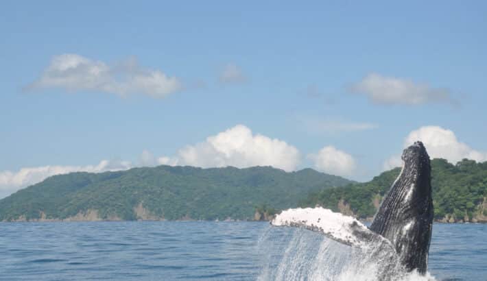 Talking about whales is speaking in superlatives: adult, these animals can measure up to 15 meters and easily weigh an impressive 30 tons. The whales seen in Costa Rican waters are humpback whales. They get their name from the ‘hump’ on their back that is even more visible when they dive into the deep. Often