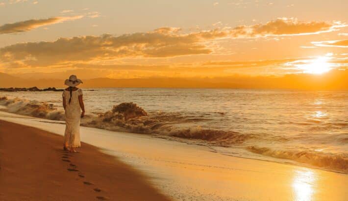 It’s magical to wake up at Tango Mar and to see the sun come up with a soft golden reflection on the palms in front of the window. To hear the crash of the waves. To step out onto the deserted beach and watch a lone bird fly just above the water, looking for a