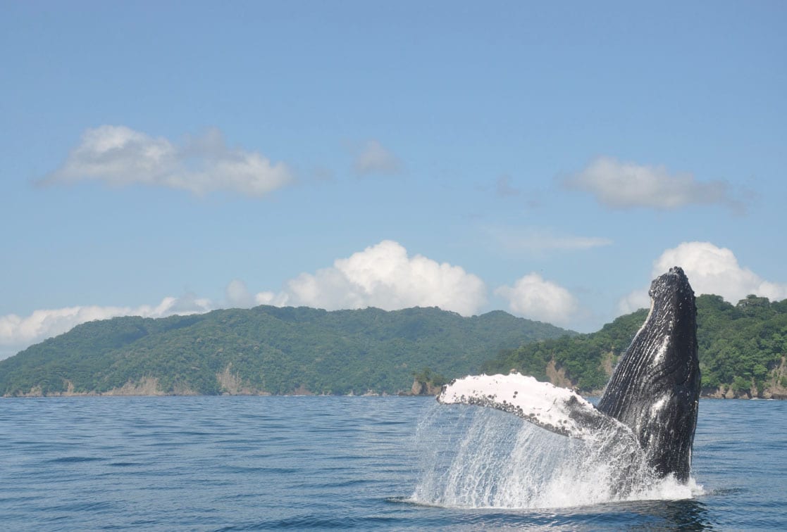 The whales seen in Costa Rican waters are humpback whales. They get their name from the ‘hump’ on their back that is even more visible when they dive into the deep. Often the first thing we see of them is the jet of water that is produced when they exhale. It can reach three meters in height and betrays the presence of the animal.